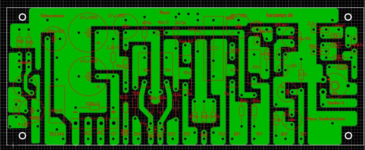 Auf der Platine befindet sich rechts auch ein Lineout, den man bei Bedarf herausführen kann - dann muss man eh eine Buchsenleiste ergänzen. Auf der linken Seite ist die Symmetrierung der Heizung und die Spannungsversorgung für LED oder Relais (wenn man diese benötigen sollte).