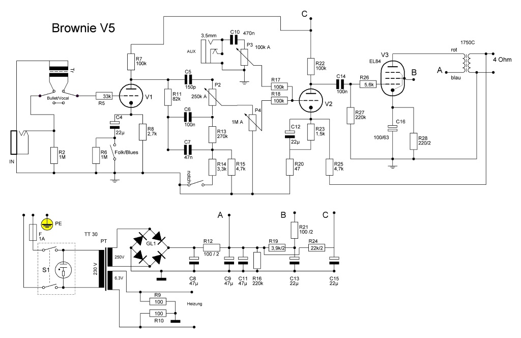 The Brownie has the same preamp as the Bluesman SE with some knobs less. In the powersection a EL84 tube is used, which also works fine in a harp amp. If you think, there should be even less headroom, try a EL844 which is supposed to be a replacement for this job. But don't expect huge differences.